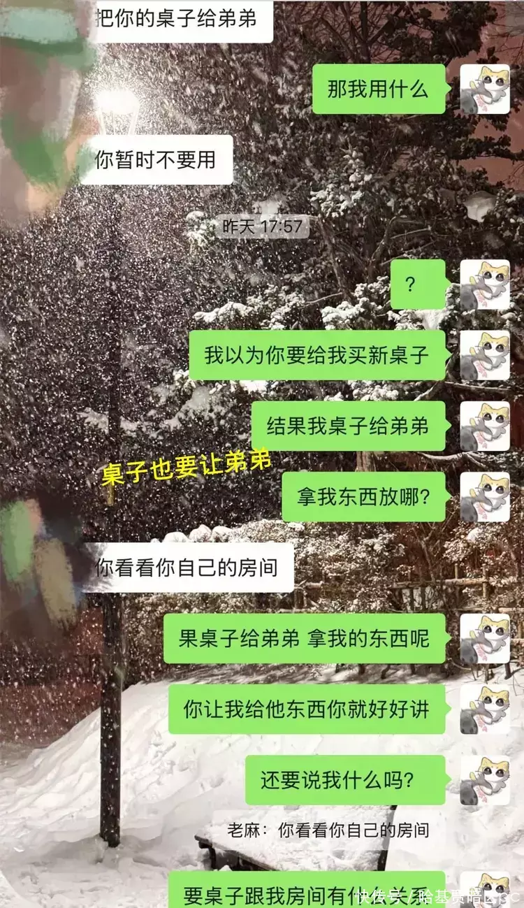 还有家里面用的东西,比如她房间里的桌子,弟弟缺桌子用,母亲就搬她用的。