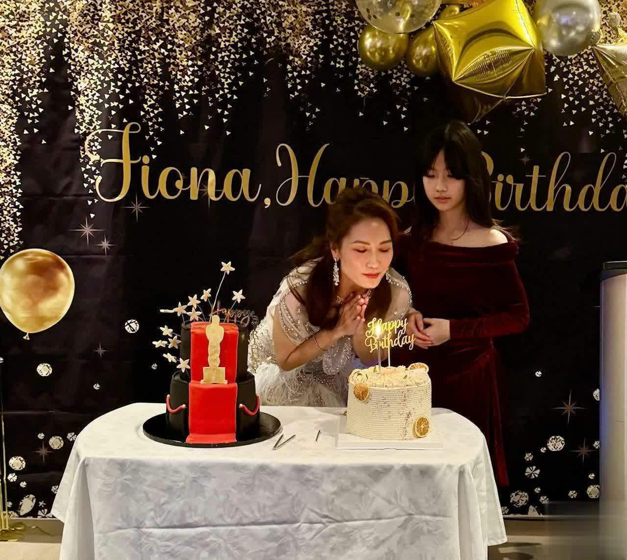 在主舞台上铺了白布的小桌上摆放了两个蛋糕,一个是黑色巧克力蛋糕,一个是白色忌廉蛋糕,两个蛋糕都很精致。袁彩云带着女儿一起在台上吹蜡烛、许愿,只见袁彩云打扮清凉,穿了白色的露脐装,衣服上镶嵌了亮片与珍珠,在灯光的照射下闪闪发亮,十分耀眼,显得贵气十足。还别说袁彩云的保养相当得宜,50岁身材健美,从她露出的小蛮腰就可见一斑,尤其在化妆之后就更显得年轻。而在袁彩云旁边的是她的女儿Alycia,她已经12岁了,长得亭亭玉立,很像袁彩云。她穿着酒红色的露肩长裙陪伴着母亲吹蜡烛,场面相当温馨。