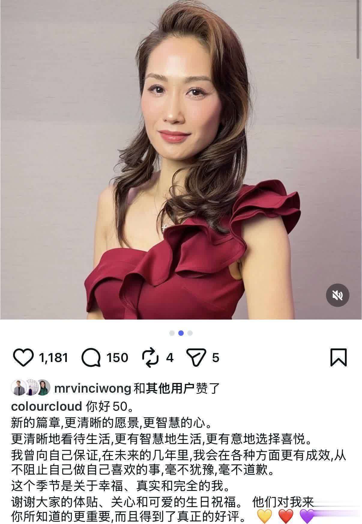 袁彩云在晒出庆生的照片之余,不忘留下一段文字表达自己迈入50岁的心情。她称人生进入了新的篇章,有更清晰的愿景,有智慧的心,她还表示将要更清晰地看待生活,有意地选择喜悦,总之就是做自己想做的事情,遵循自己的意愿过活。而在袁彩云的言语中,流露出的是她在人生这个阶段,所拥有的幸福,包括来自朋友的,家庭的,人生的。客观来说,袁彩云也称得上是人生赢家,家庭幸福美满,日子无忧无虑。